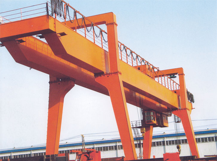 雙主梁門式起重機承載能力強,跨度大、整體穩(wěn)定性好,品種多,但自身質(zhì)量與相同起重量的單主梁門式起重機相比要大些,造價也較高。根據(jù)主梁結構不同,又可分為箱形梁和桁架兩種形式。一般多采用箱形結構。